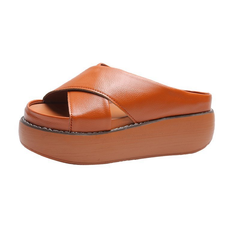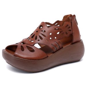 【貼合足弓支撐 ▏防止久走腳痛】軟底真皮鏤空坡跟涼鞋